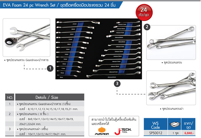 SP50012 ชุดเซ็ตเครื่องมือประแจรวม 24 ชิ้น เอสพีทูล SP TOOLS