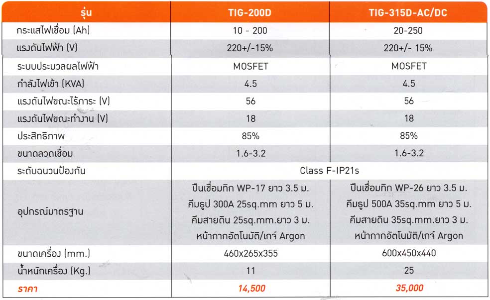 เครื่องเชื่อมไฟฟ้าระบบอินเวอร์เตอร์ รุ่น TIG-315D-AC/DC