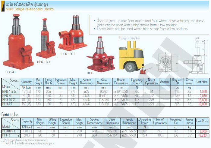 - Used to jack-up low-floor trucks and four-wheel-drive vehicles, etc these jacks can be used with a high stroke from position.