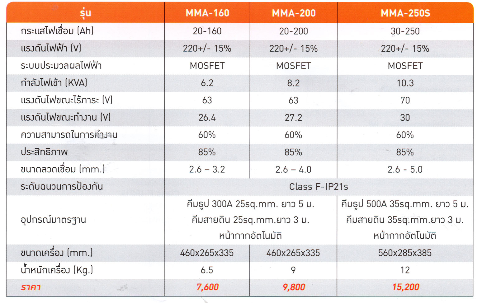 • กระแสไฟเชื่อม 20-160 Ah