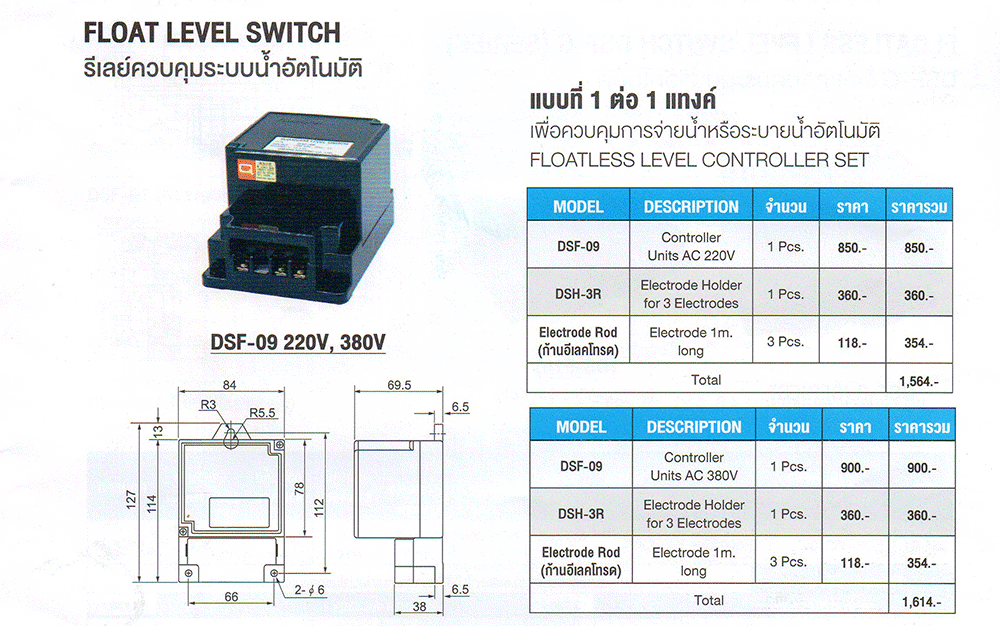 - DSF-09 รีเลย์ควบคุมระบบน้ำอัตโนมัติ แบบที่ 1 ต่อ 1 แทงค์ 220V DAESAN