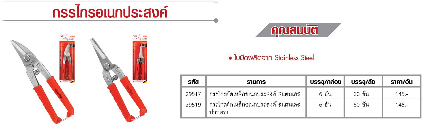 29519 กรรไกรตัดเหล็กอเนกประสงค์ สแตนเลสปากตรง SPARK