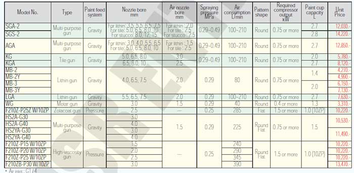 HS2A-G30,HS2A-G40 สเปรย์ปืนสถาปัตยกรรม ARCHITECTURAL SPRAY GUNS เมจิ MEIJI
