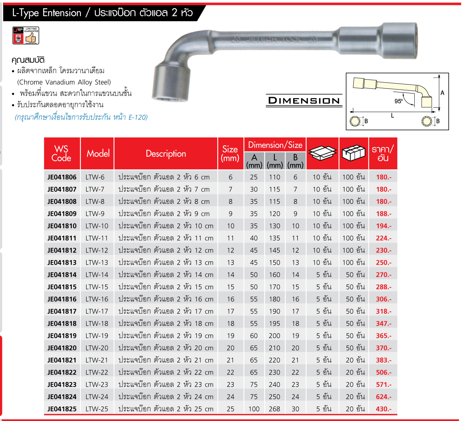 JE041816 รุ่น LTW-16 ประแจบ๊อก ตัวแอล 2 หัว 16 cm. เจอีเทค JETECH