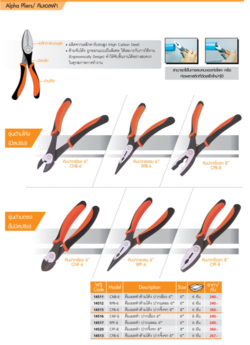 - ด้ามจับโค้ง ถูกออกแบบเป็นพิเศษ ให้เหมาะกับการใช้งาน (Ergonomically Design) ทำให้จับชิ้นงานได้อย่างสะดวกในทุกสภาพการทำงาน