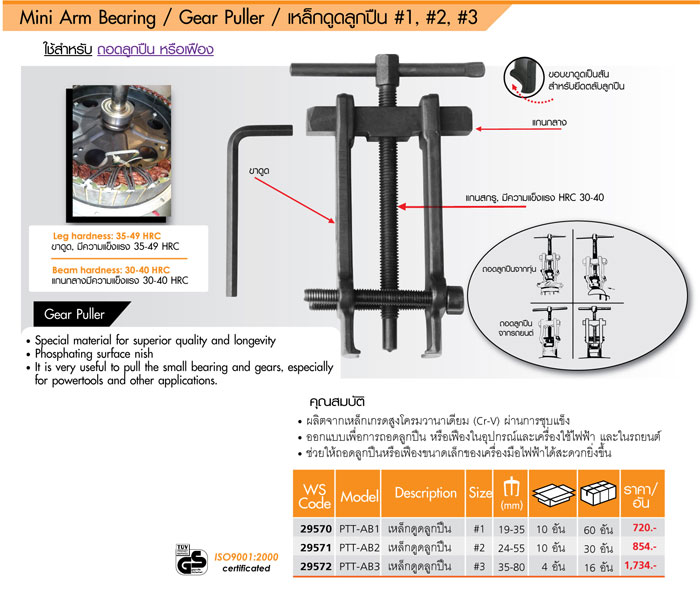 - ช่วยให้ถอดลูกปืนหรือเฟืองขนาดเล็กของเครื่องมือไฟฟ้าได้สะดวกยิ่งขึ้้น