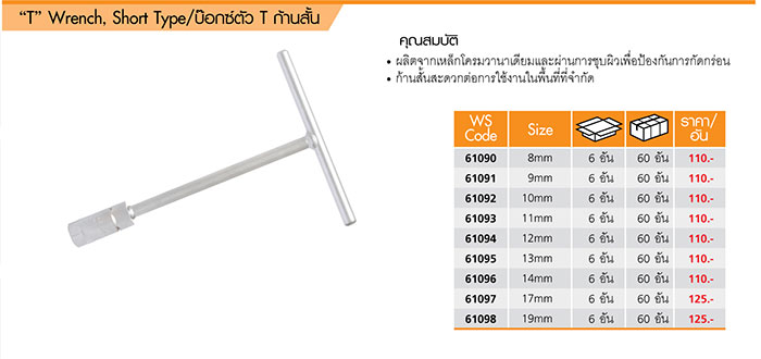 61092 บ๊อกซ์ตัว T ก้านสั้น 10 mm. พัมคิน PUMPKIN