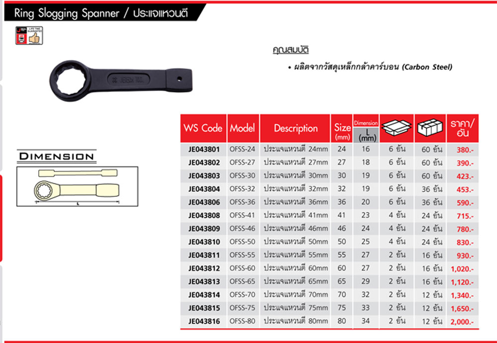 JE043812 รุ่น OFSS-60 ประแจแหวนตี 60 mm เจอีเทค JETECH