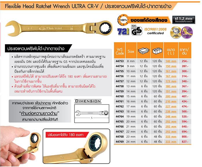 44759 ประแจแหวนฟรีพับได้-ปากตายข้าง 14 mm. พัมคิน PUMPKIN