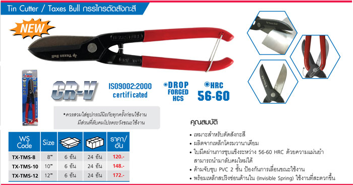 TX-TMS-12 Taxes Bull กรรไกรตัดสังกะสี 12 นิ้ว เท็กซัส บลู TEXAS BULL