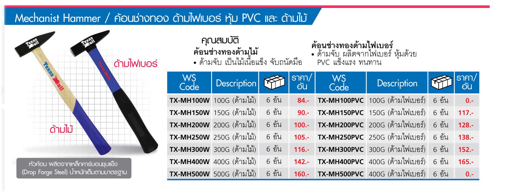 TX-MH250W ค้อนช่างทอง ด้ามไฟเบอร์ หุ้ม PVC และ ด้ามไม้ Texas-Bull เท็กซัส-บลู