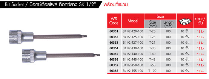 60352 รุ่น SK1/2-T25-100 บ๊อกซ์เดือยโพล์ ท็อกซ์ยาว SK1/2" 10 อัน เจอีเทค JETCH