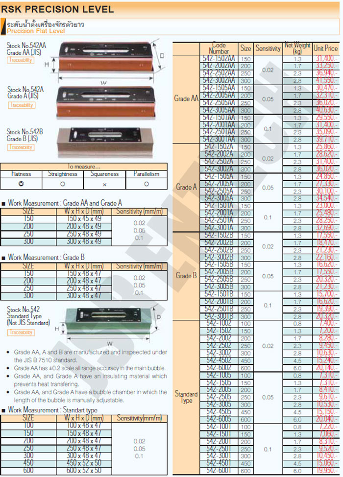 542-1501B,542-2001B,542-2501B,542-3001B ระดับน้ำตั้งเครื่องจักรตัวยาว Size 150,200,250,300 อาร์เอสเค RSK