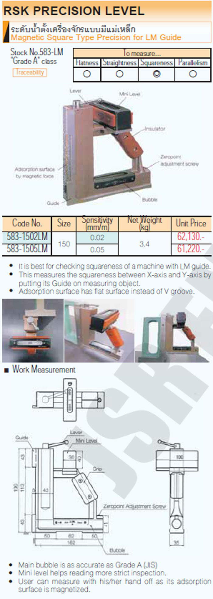 583-1502LM,583-1505LM ระดับน้ำตั้งเครื่องจักรแบบมีแม่เหล็ก Size 150 อาร์เอสเค RSK