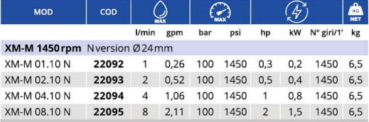XM-M 01.10N ปั๊มแรงดันสูง COD 22092 ANNOVI REVERBERI