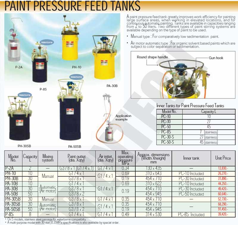 - Air motor automatic type : For organic solvent based paints which are subject to color separation or sedimentation.