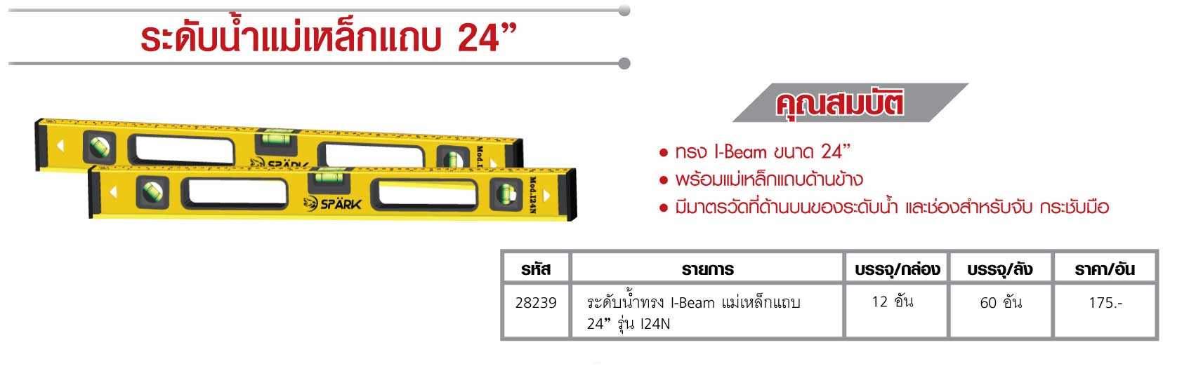 28239 ระดับน้ำทรง I-Beam แม่เหล็กแถบ 24" รุ่น I24N SPARK