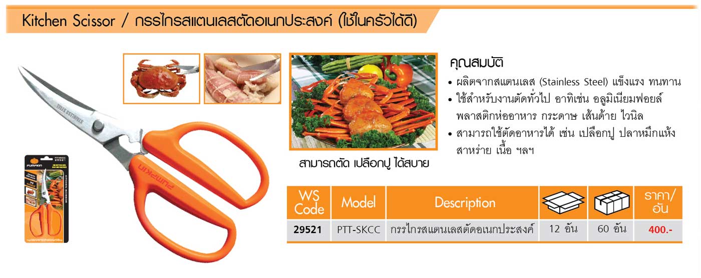 29521 กรรไกรสแตนเลสตัดอเนกประสงค์ (ใช้ในครัวได้ดี) Pumpkin พัมคิน