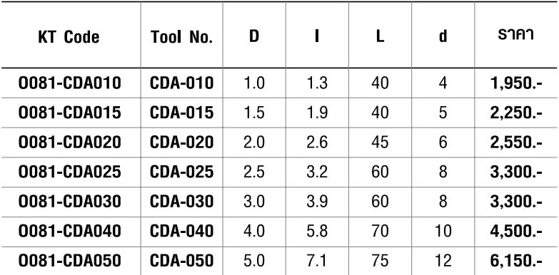 ดอกนำศูนย์คาร์ไบด์ แบบ A Type ไม่เคลือบผิว