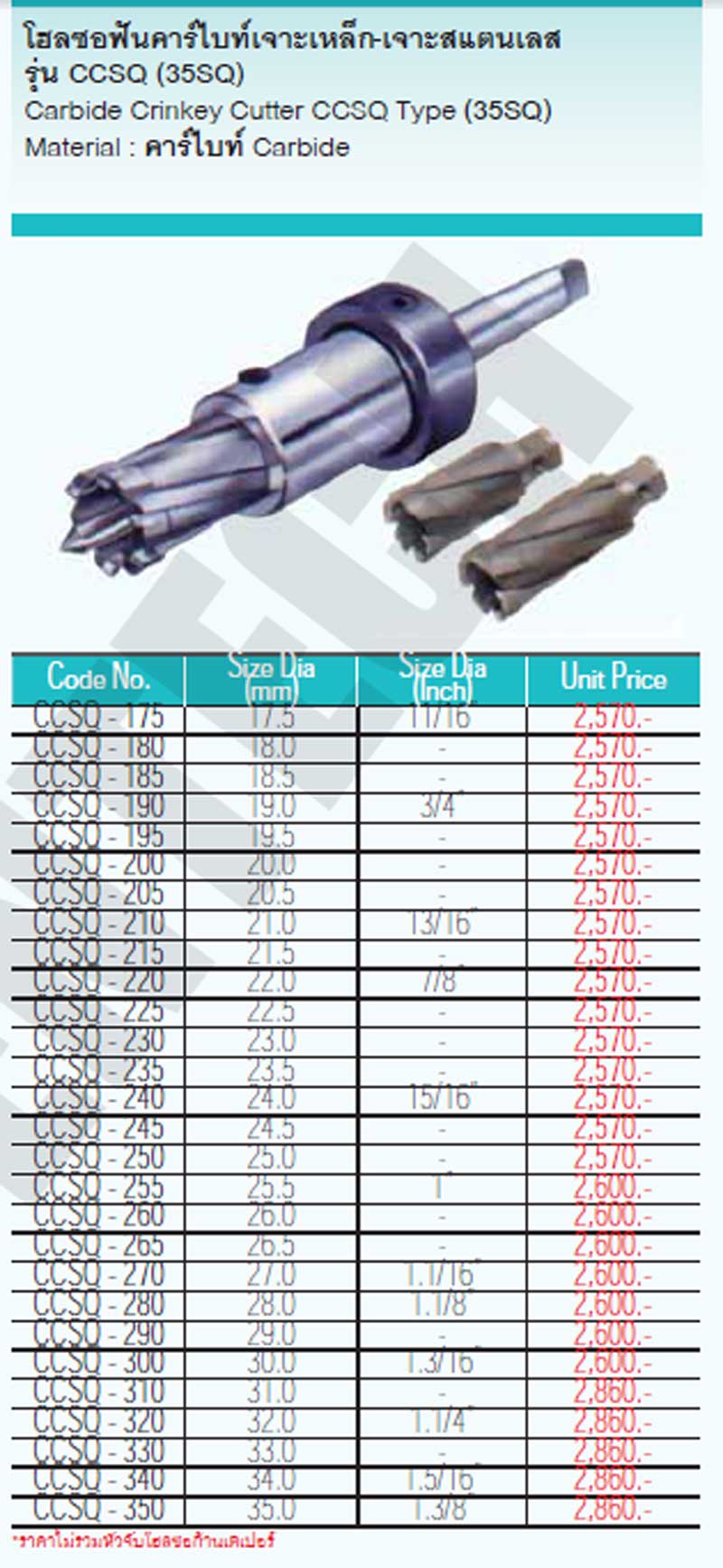 CCSQ-280,CCSQ-290,CCSQ-300,CCSQ-310,CCSQ-320 โฮลซอฟันคาร์ไบท์เจาะเหล็ก-เจาะสแตนเลส รุ่น CCSQ (35SQ) Size 28,29,30,31,32 mm. OMI