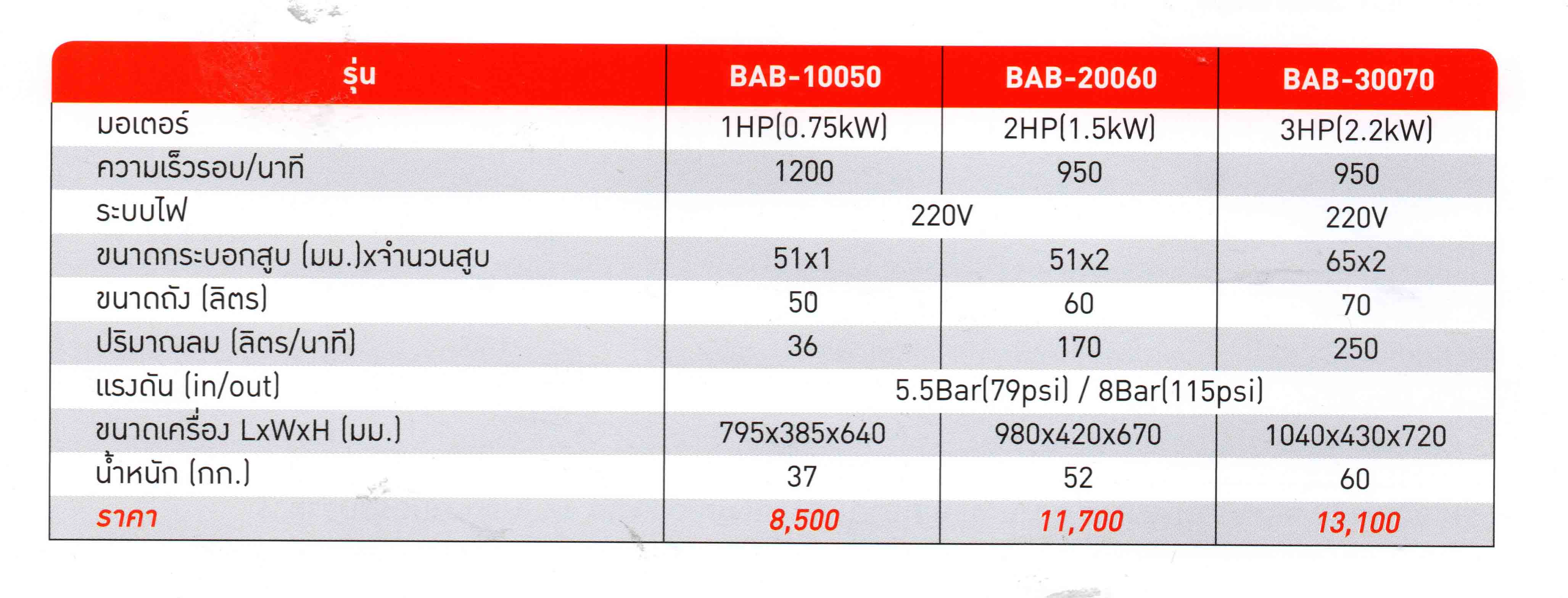 - BAB-30070 ปั๊มลมสายพาน ขนาดถัง 70 ลิตร BIGAIR