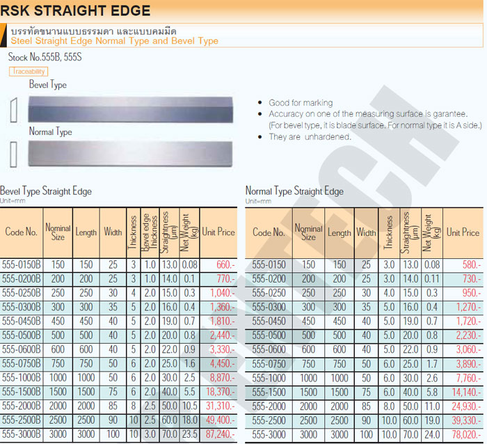 555-0150,555-0200,555-0250,555-0300 บรรทัดขนานแบบธรรมดา และแบบคมมีด Size 150,200,250,300 อาร์เอสเค RSK