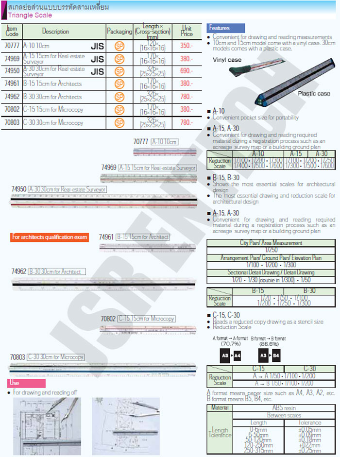 74962 สเกลย่อส่วนแบบบรรทัดสามเหลี่ยม 326x(25x25x25)mm ชินวา SHINWA