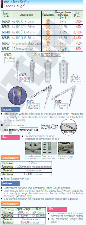62603 เตเปอร์เกจวัดรูใน 1-15mm ชินวา SHINWA