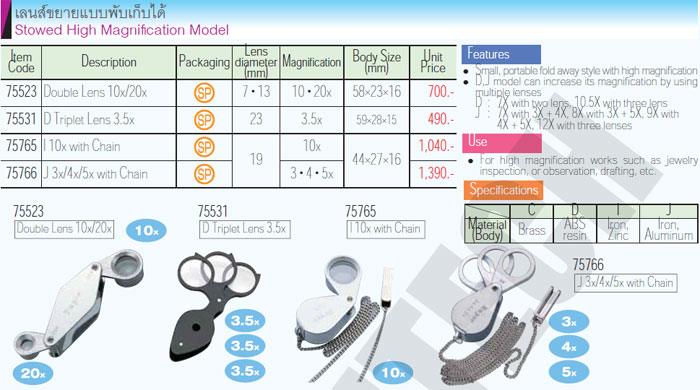 75531 เลนส์ขยายแบบพับเก็บได้ 59x28x15mm ชินวา SHINWA