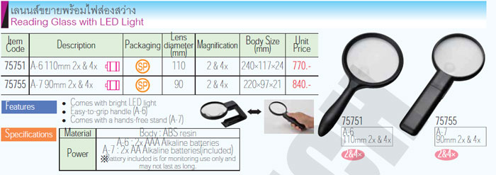 75755 เลนนส์ขยายพร้อมไฟส่องสว่าง 220x97x21mm ชินวา SHINWA