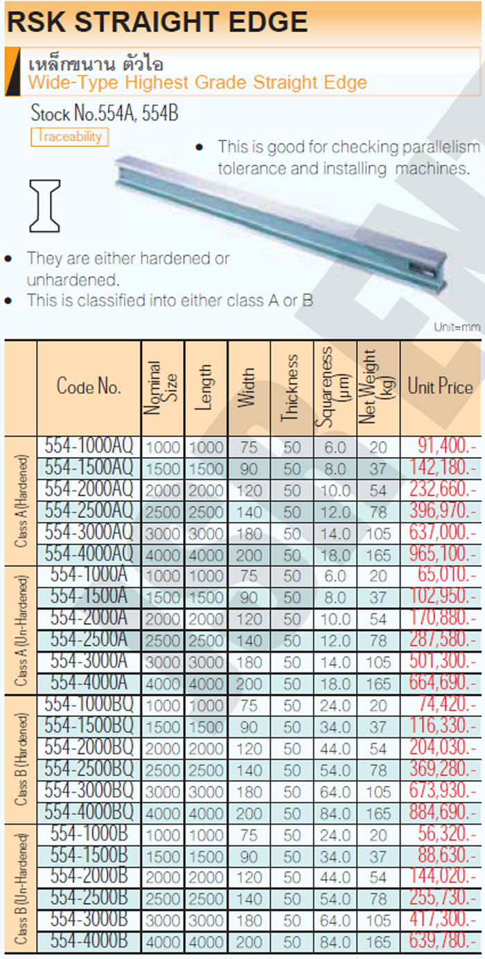 554-2500B,554-3000B,544-4000B เหล็กขนาน ตัวไอ Size 2500,3000,4000 อาร์เอสเค RSK