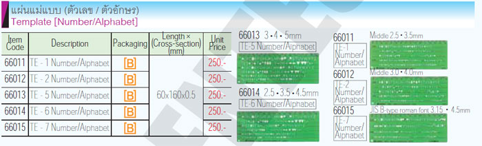 66011 แผ่นแม่แบบ (ตัวเลข/ตัวอักษร) 60x160x0.5mm ชินวา SHINWA
