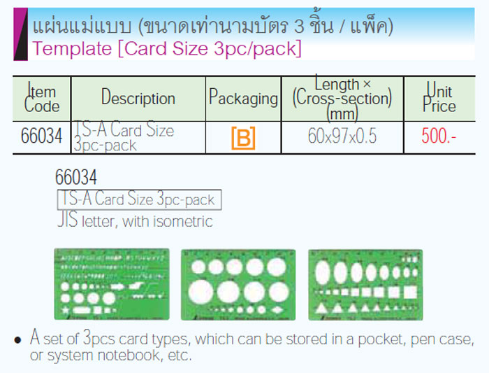 66034 แผ่นแม่แบบ (ขนาดเท่านามบัตร 3 ชิ้น/แพ็ค) 60x97x0.5mm ชินวา SHINWA