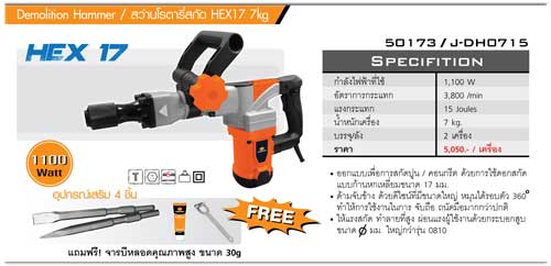 - รหัสสินค้า: 50173/J-DH0715 สว่านโรตารี่สกัด HEX17 7kg Pumpkin พัมคิน