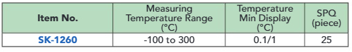 SK-1260 เครื่องวัดอุณหภูมิชนิดกันนํ้า บันทึกค่าได้ Temperature Min Display (°C) 0.1/1 SPQ (piece) 25 SATO