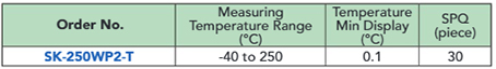 SK-250WP2-T เครื่องวัดอุณหภูมิชนิดกันนํ้า Temperature Min Display (°C) 0.1 SPQ (piece) 30 SATO