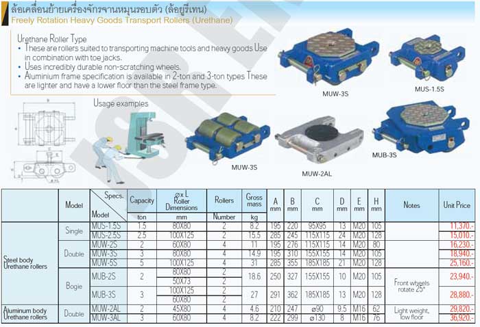 • These are roller suited transporting machine tools and heavy goods.Use in combination with toe jacks.